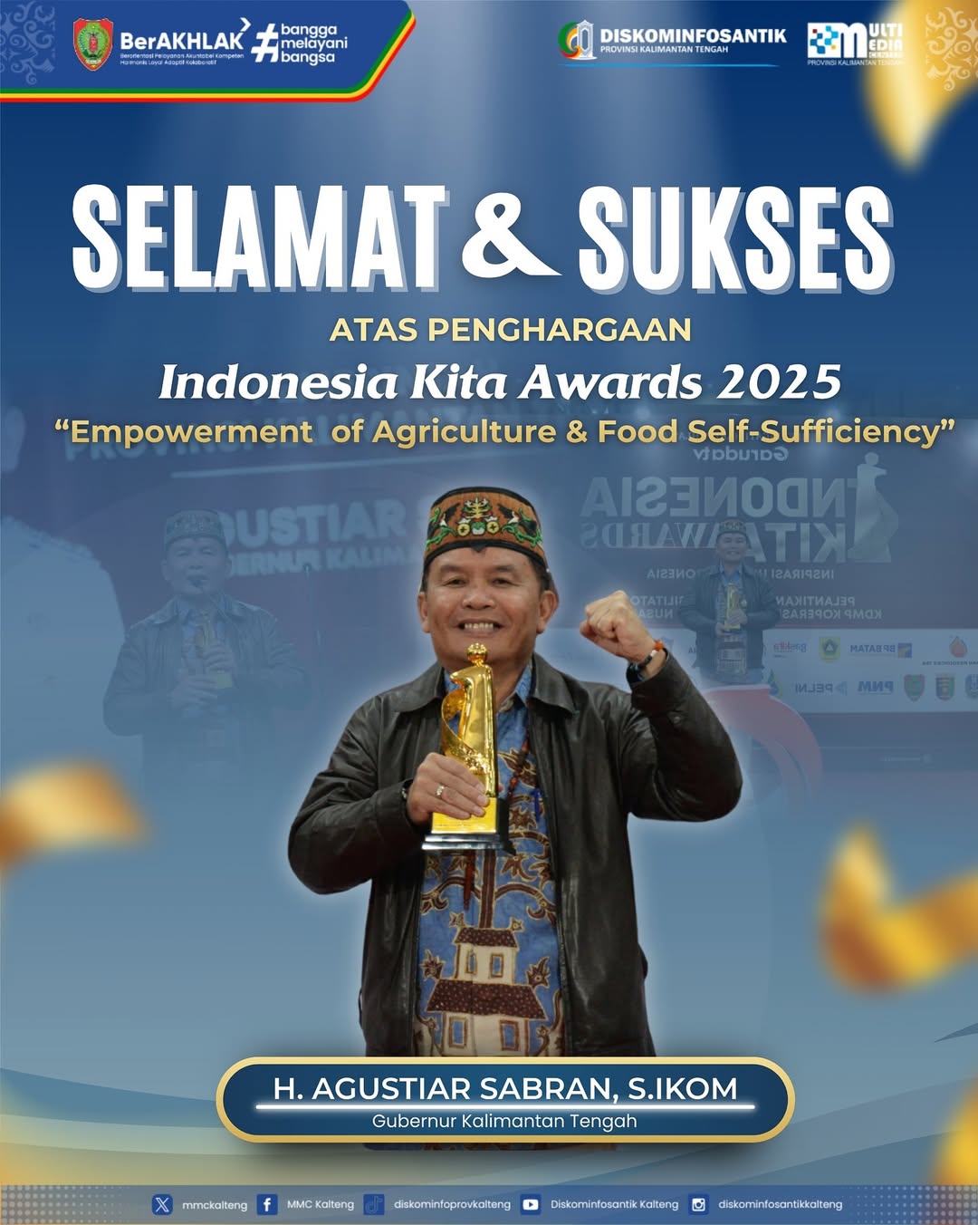 Jakarta, cybernews.co.id – Komitmen Gubernur Kalimantan Tengah Agustiar Sabran dalam memperkuat sektor pertanian melalui berbagai inovasi dan program berkelanjutan mengantarkannya kembali meraih penghargaan bergengsi tingkat nasional, yakni Indonesia Kita Awards kategori Empowerment of Agriculture and Food Self-Sufficiency yang diselenggarakan oleh Garuda TV di Yudistira Ballroom, Patra Jasa Office Tower, Jakarta, pada Senin (10/11/2025).
